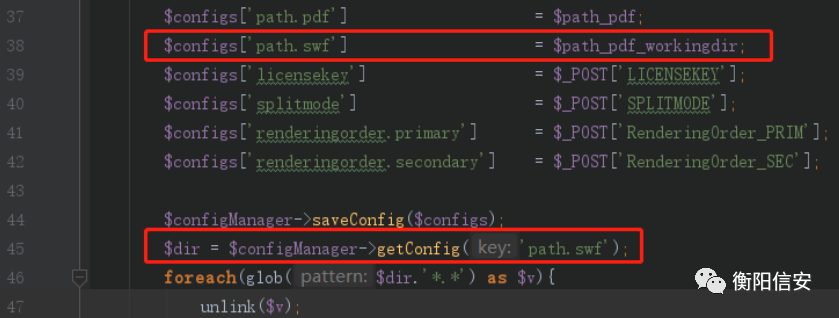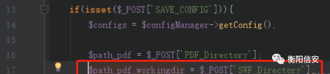 可见POST提交中存在SAVE_CONFIG参数时,即可通过POST提交SWF_Directory参数来赋值$path_pdf_workingdir变量,从而直接控制上文中需要使用unlink清空的$dir目录
