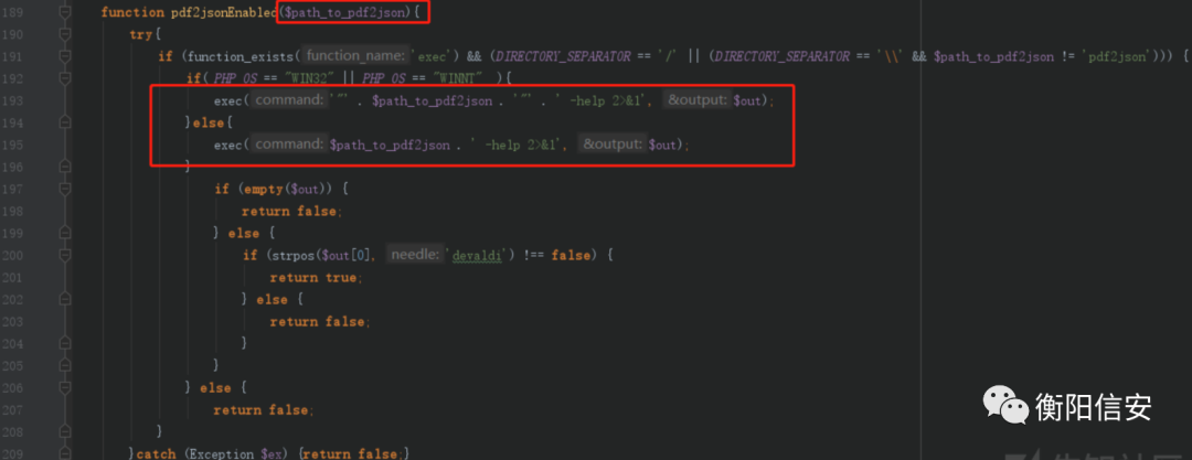 在setup.php中首先发现了如下两个个方法pdf2jsonEnabled/pdf2swfEnabled