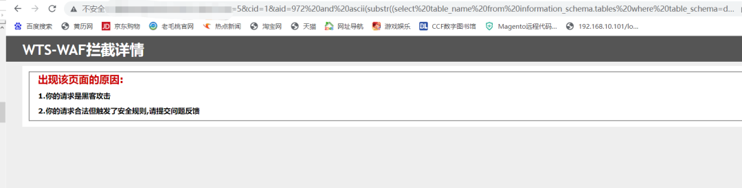 在页面参数增加 and -1=-1,页面回显正常这里如果 and 1=1 会被拦截