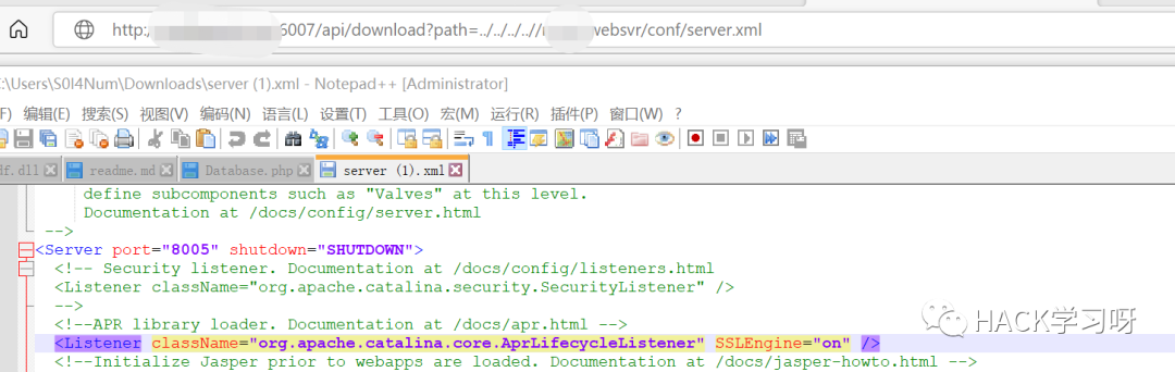 tomcat有几个比较敏感的配置文件,首先是tomcat/conf/server.xml,数据库连接相关的配置文件,我成功下载下来但是没有发现什么有价值的信息
