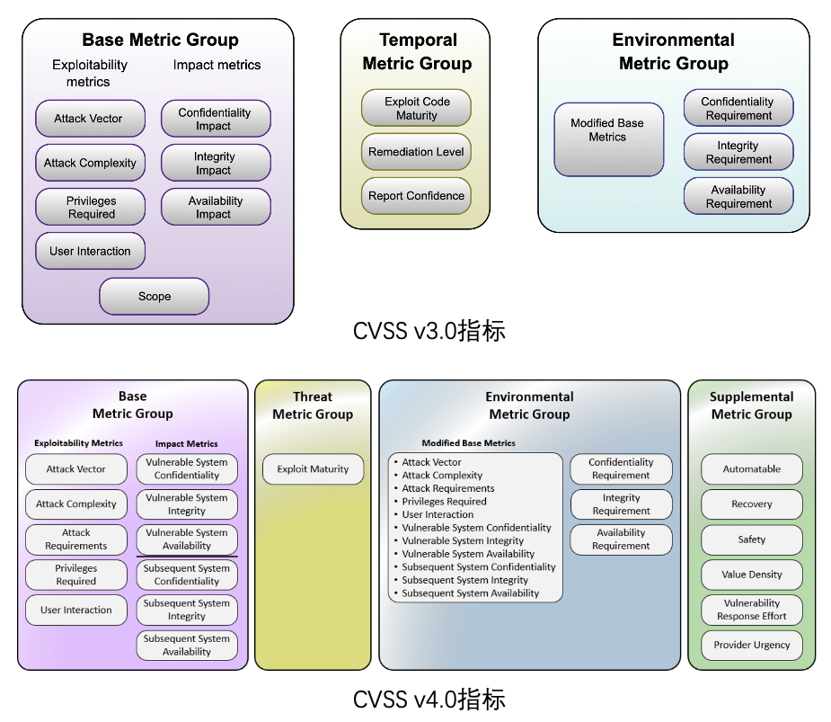 CVSS v4.0新增了威胁指标,细化了环境指标和基础指标