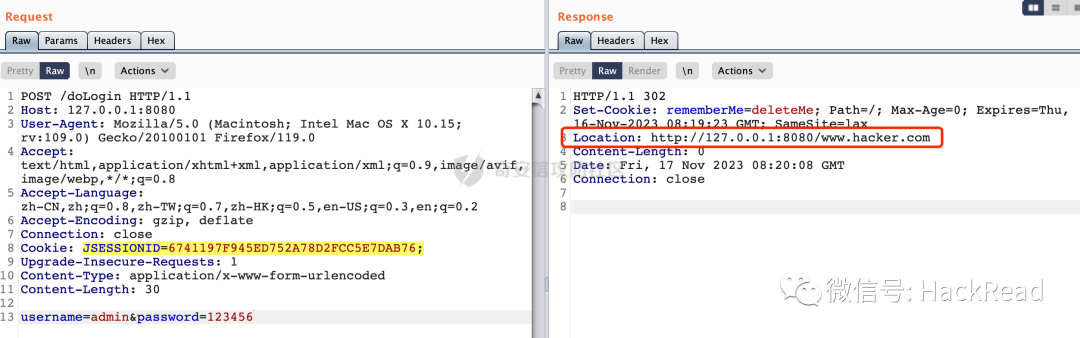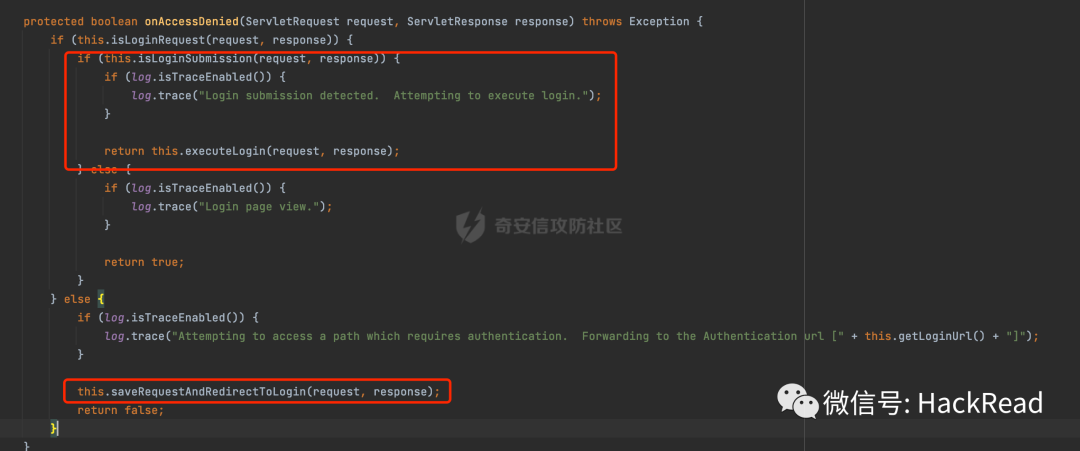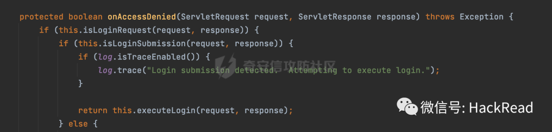 首先在使用账号密码登陆前,尝试访问路径为//www.hacker.com的内容,因为没有完成登陆,FormAuthenticationFilter#onAccessDenied会重定向到doLogin接口: