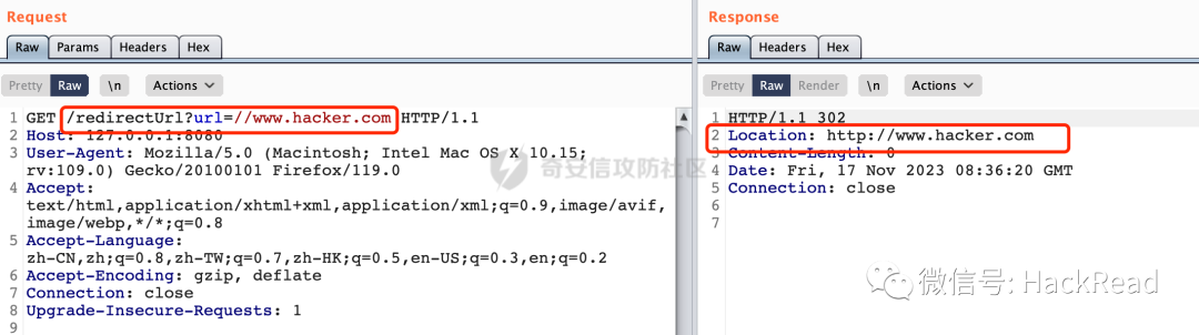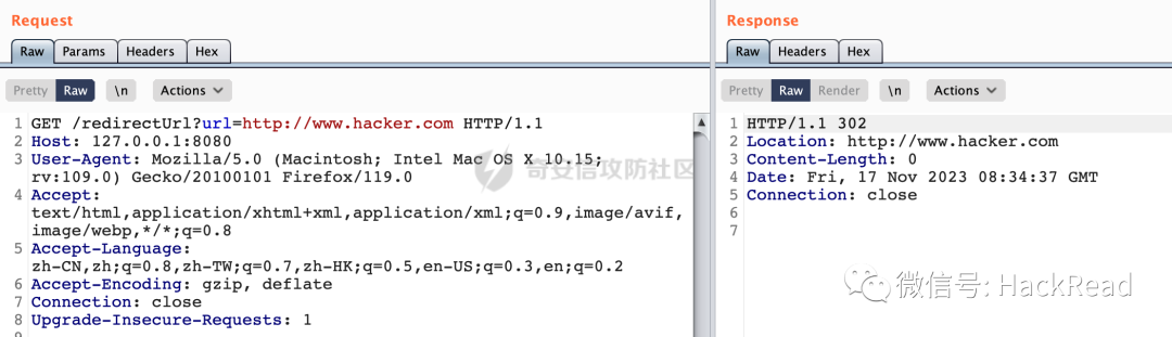 可以看到当传入对应的url参数内容时,会完成对应302跳转: