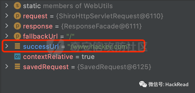 结合前面的分析,登陆成功后的successUrl会从SavedRequest对象获取,而这个对象主要是从session中获取的:
