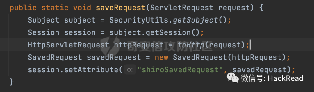 首先调用org.apache.shiro.web.filte.WebUtils#saveRequest进行处理,这里主要是实例化了SavedRequest对象,然后将其保存在session的shiroSavedRequest属性里: