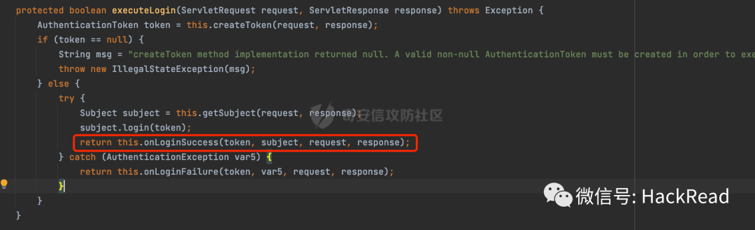 在executeLogin方法中,主要是进行登陆验证操作,认证成功后会调用onLoginSuccess方法: