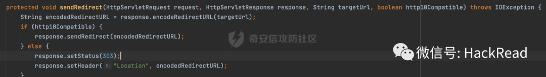 实际调用的是javax.servlet.http.HttpServletResponse#sendRedirect方法:
