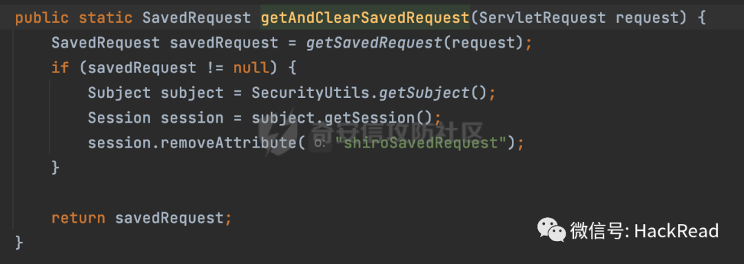 这里会从session的shiroSavedRequest属性中获取saveRequest对象(如果用户未登录且用户请求的不是登录地址,会把该uri的信息保存在saveRequest对象里):