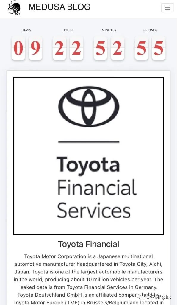 3、https://www.bleepingcomputer.com/news/security/toyota-confirms-breach-after-medusa-ransomware-threatens-to-leak-data/#google_vignette