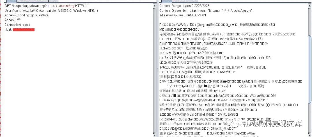 漏洞链接:http://127.0.0.1/inc/package/down.php?id=../../../cache/org