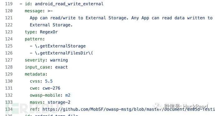 [2]https://github.com/MobSF/Mobile-Security-Framework-MobSF/blob/master/mobsf/StaticAnalyzer/views/android/rules/android_rules.yaml