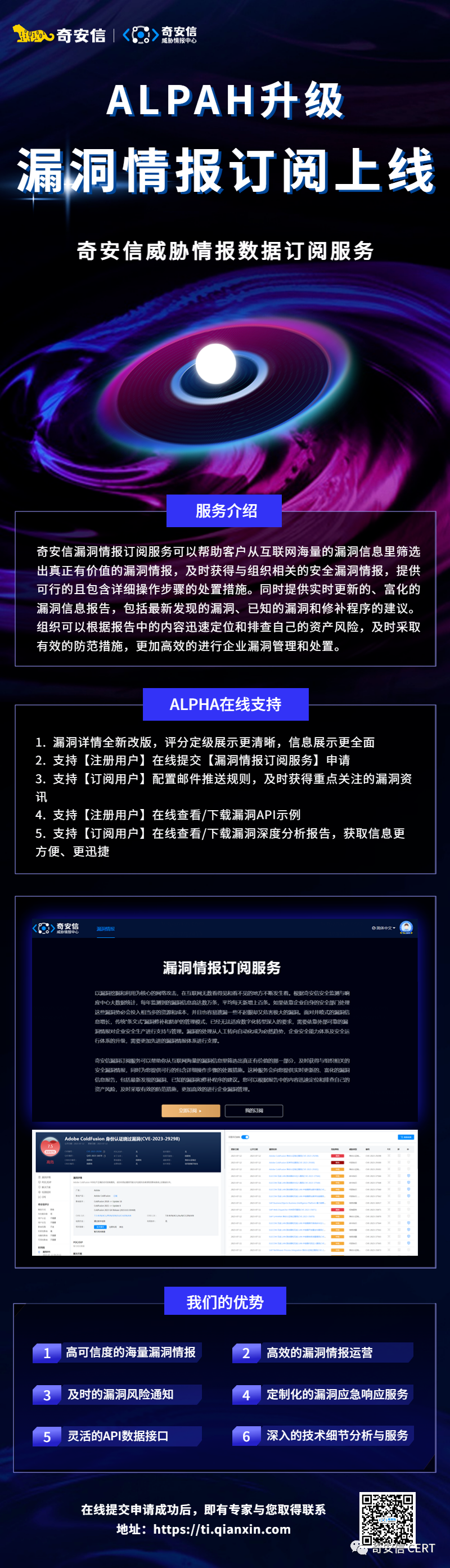 奇安信ALPHA威胁分析平台已支持漏洞情报订阅服务: