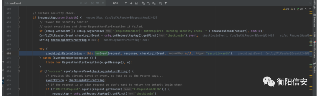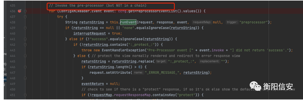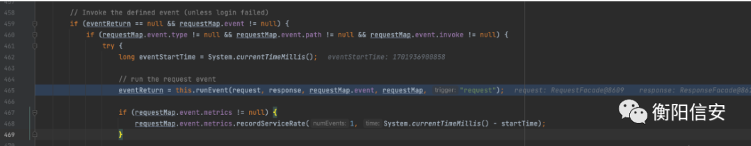 走到了runEvent函数来处理请求(这里有好几个runEvent的调用,主要有一些检查登陆的event在前面)