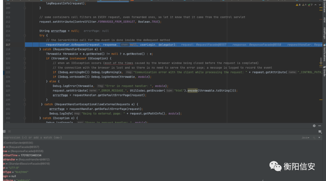 跟进control,后续在doGet方法中经过一些设置后,使用RequestHandler的doRequest来处理请求
