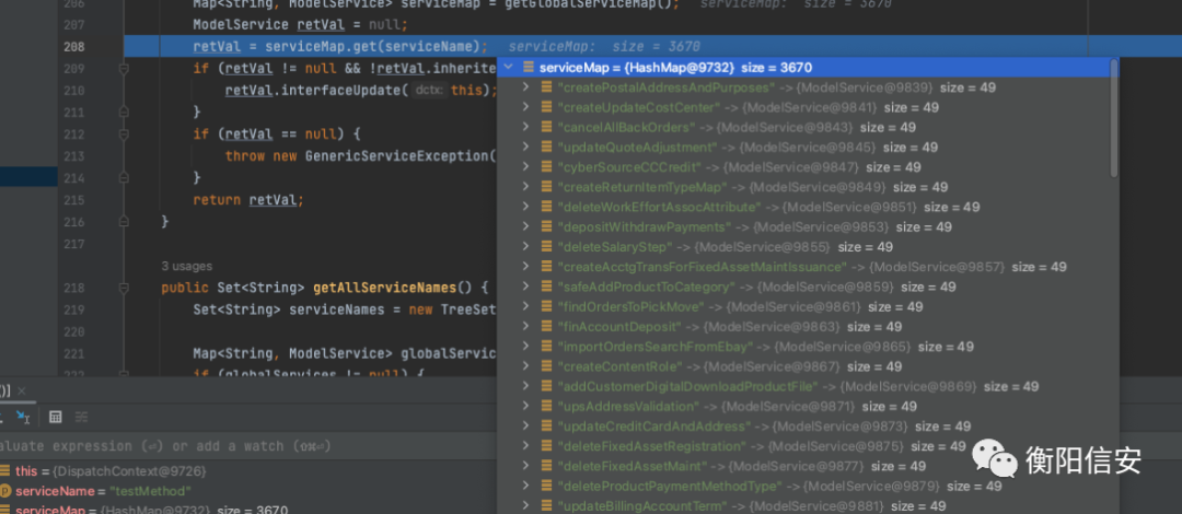 可以看到默认定义了3670种methodname,如果找不到则会返回no such service