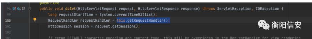 对于这里的requestHandler是在doGet开头通过this.getRequestHandler()获取到的