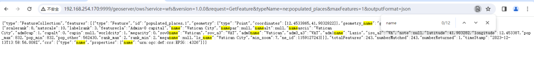 http://192.168.254.170:9999/geoserver/ows?service=wfs&version=1.0.0&request=GetFeature&typeName=ne:populated_places&maxFeatures=1&outputFormat=json