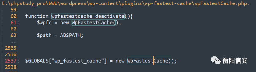 这两处创建了对象,看谁包含了wpFastestCache.php,继续跟,跟到plugin.php,大概就是插件加载时调用的