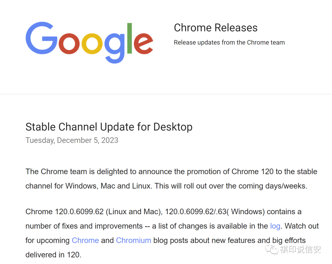 谷歌周二宣布向稳定渠道发布 Chrome 120,并修复了 10 个漏洞。