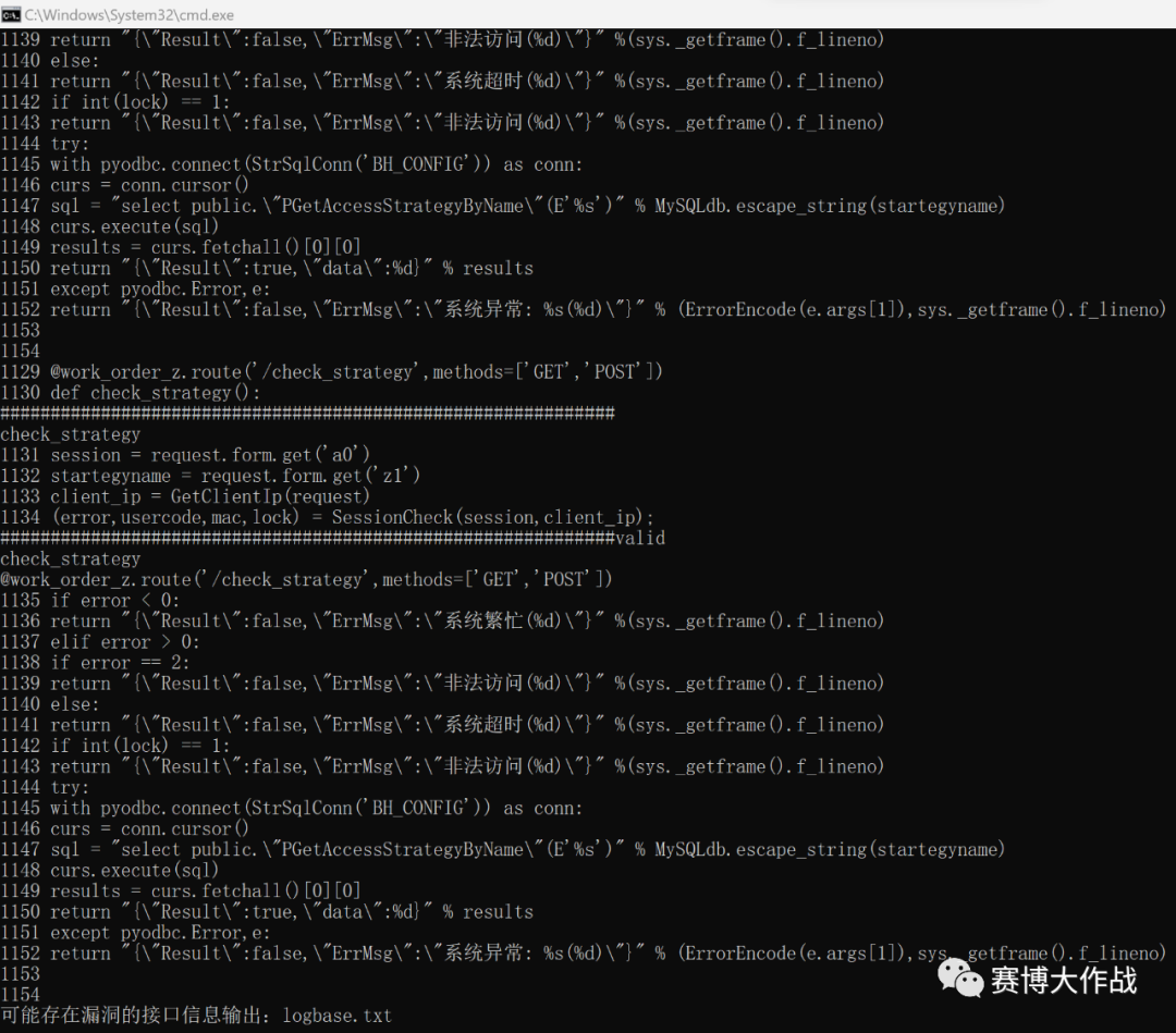 使用自己平时写的静态分析工具进行一波分析,输出可能存在漏洞的接口信息输出:logbase.txt