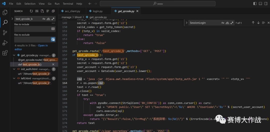 我们直接来挖前台可以被利用的漏洞,路由的话,因为是python写的,其实还是比较明显的