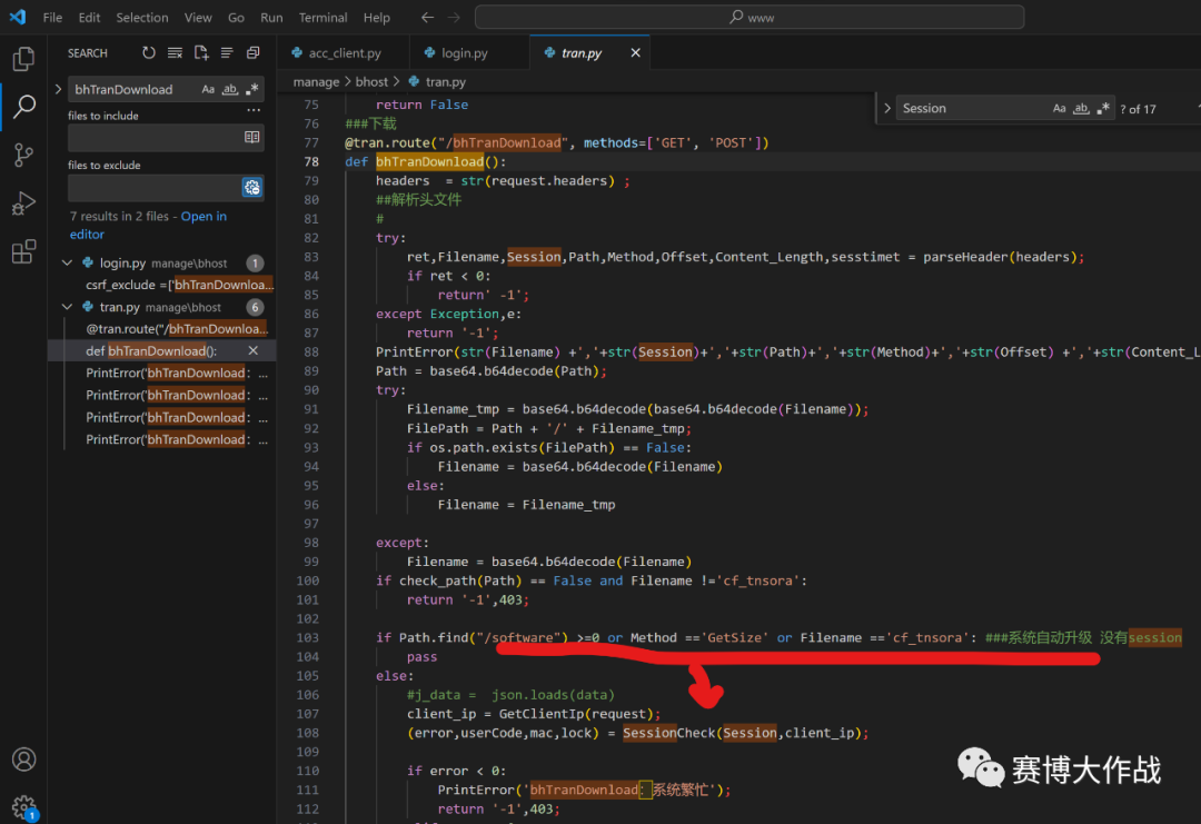 2 bhTranDownload接口其实是有判断逻辑,但因为判断逻辑有点毛病可以绕过,这里是有两个判断的