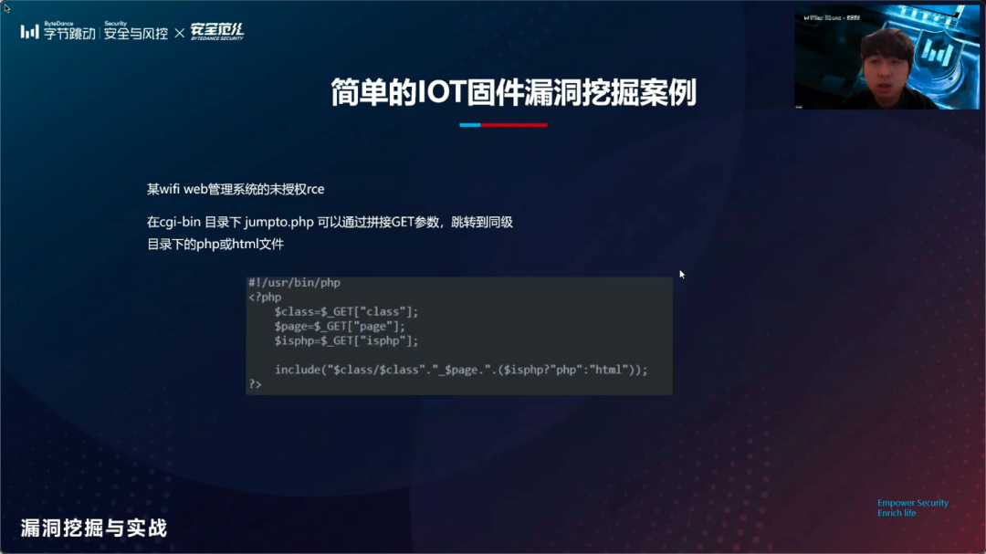 首位演讲的专家是来自中孚信息元亨实验室的首席红蓝对抗安全研究员戴城,戴城首先通过信息泄露、白利用、逻辑校验、缓冲区溢出四个技术点为大家深入浅出的讲述了常规风险。