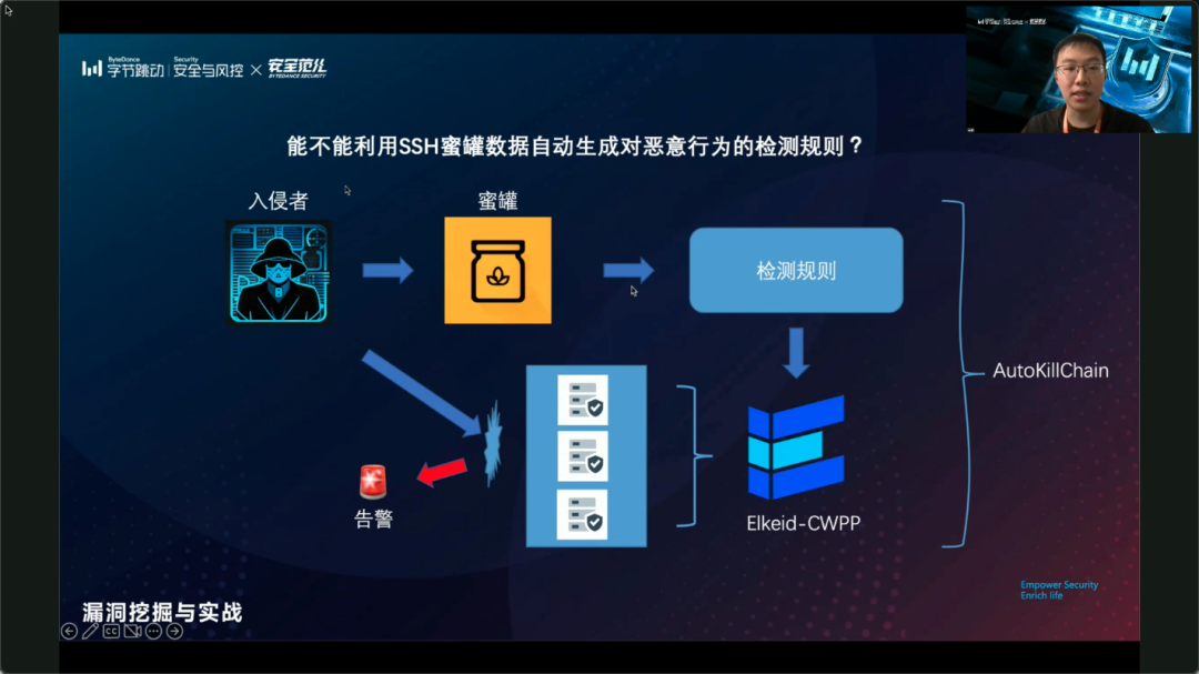 随后带来第二个演讲,他开篇点题,反入侵的安全策略开发以及安全规则开发