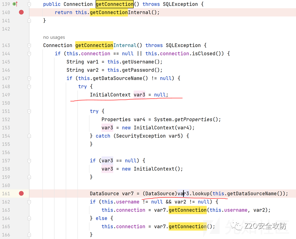这里利用TemplatesImpl的getOutputProperties是用的最广的一个getter了,因为它存在于jdk中,而且能自定义任意类,可以进行各种扩展(内存马等),但是这条路目前被堵了。得换个别的getter。忘记在哪里看到的了,据说各种dataSource里很方便能getConnection()然后使用jdbc url。不过经过探测服务端没有postgresql、mysql、h2等数据库驱动,只有Oracle的。于是放弃了jdbc url这条路。最后找到了oracle.jdbc.rowset.OracleCachedRowSet#getConnection,这个方法可以通过getter方法将反序列化转到JNDI注入。