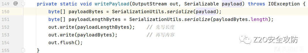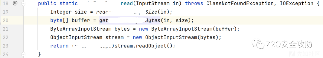 通过分析异常栈知道,对于客户端请求的序列化数据,服务端并不是直接反序列化成对象,而是先读取了一个Integer类型,然后根据这个Integer数值,读取这样大小的后续字节,然后进行反序列化。