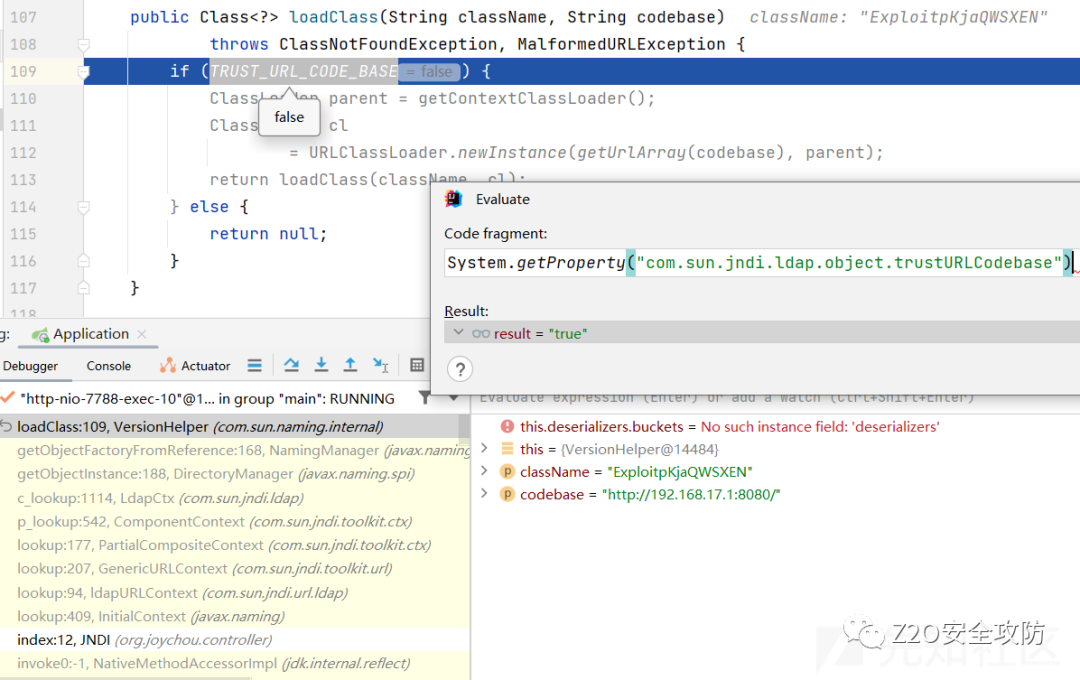 从前面的报错已经知道服务端使用了jdk高版本,所以得想如何绕过JNDI注入的限制。绕过限制主要就是两方面: