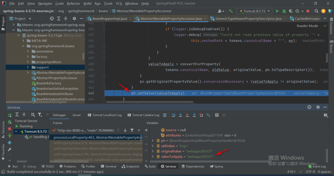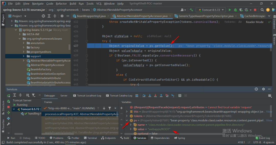 class.module.classLoader.resources.context.parent.pipeline.first.directory 调用完毕后,获取到value值为webapps/ROOT;