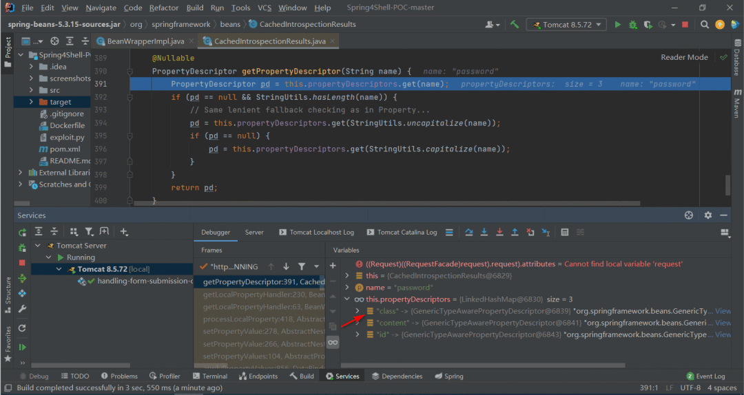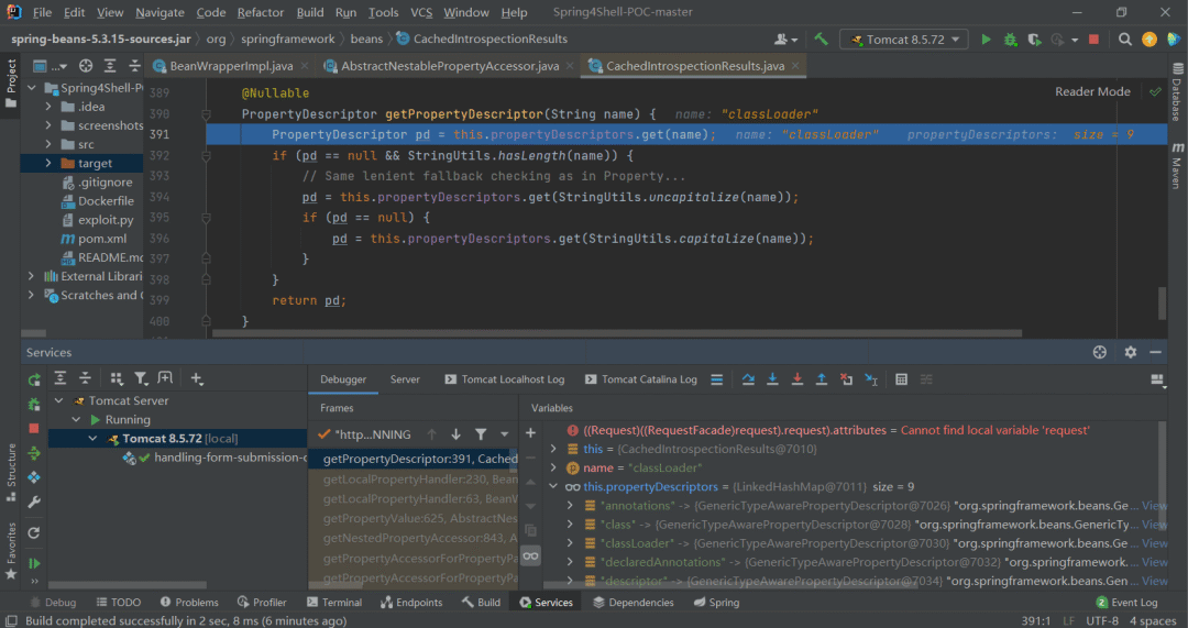 跟进getPropertyDescriptor方法,发现key值具有class属性,而JDK9及以上版本可以通过class.module.classLoader获取classLoader;