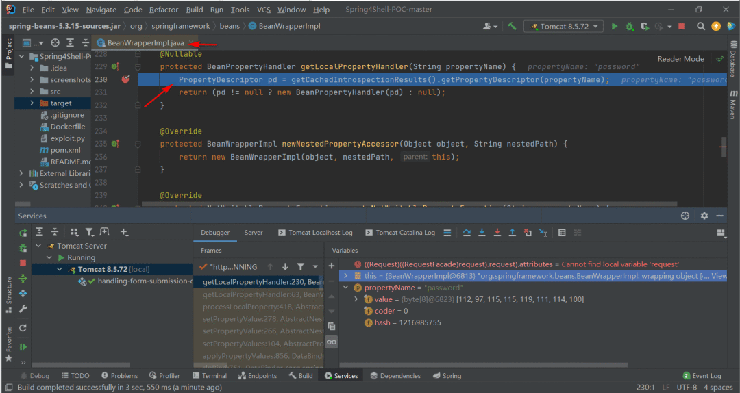 \org\springframework\beans\BeanWrapperImpl.java 设置断点调试;post参数:username=admin&password=admin。