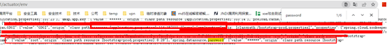 注:临时网络上随便搜索了一个存在的漏洞做测试演示:利用内存泄漏分析软件MemoryAnalyzer解析Heap Dump(堆转储文件),获取隐藏的密码探测后缀名actuator/env 若网页存在,全局搜索password,发现如下图: