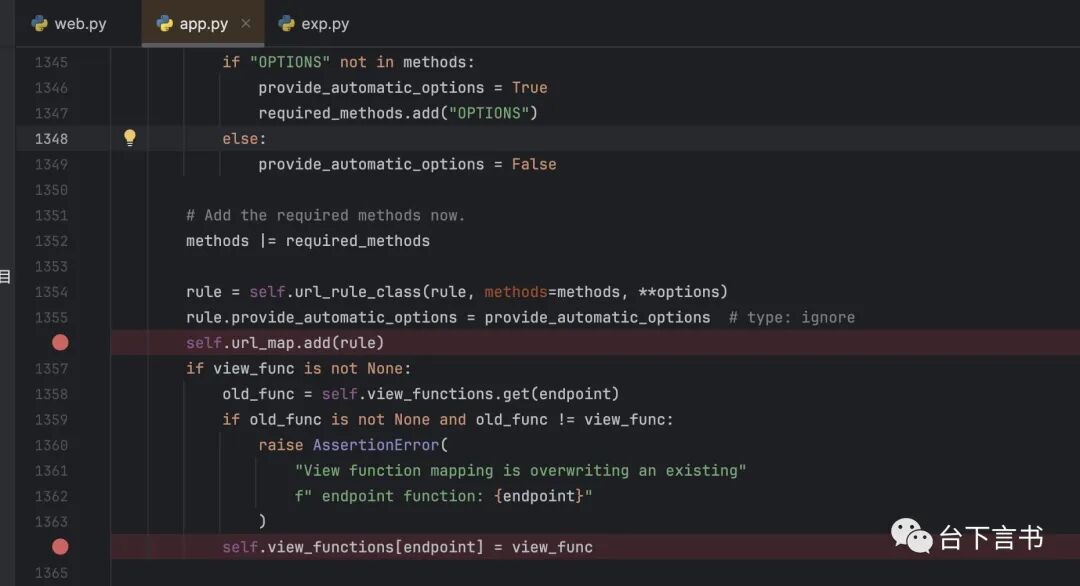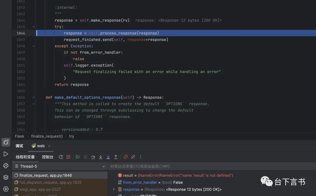 在flask源码中跟踪该方法发现关键的步骤是下图的两个操作