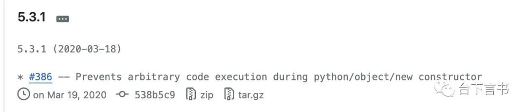 在2020.3.19发布的5.3.1版本中修复了在python/object/new构造函数期间执行任意代码的问题