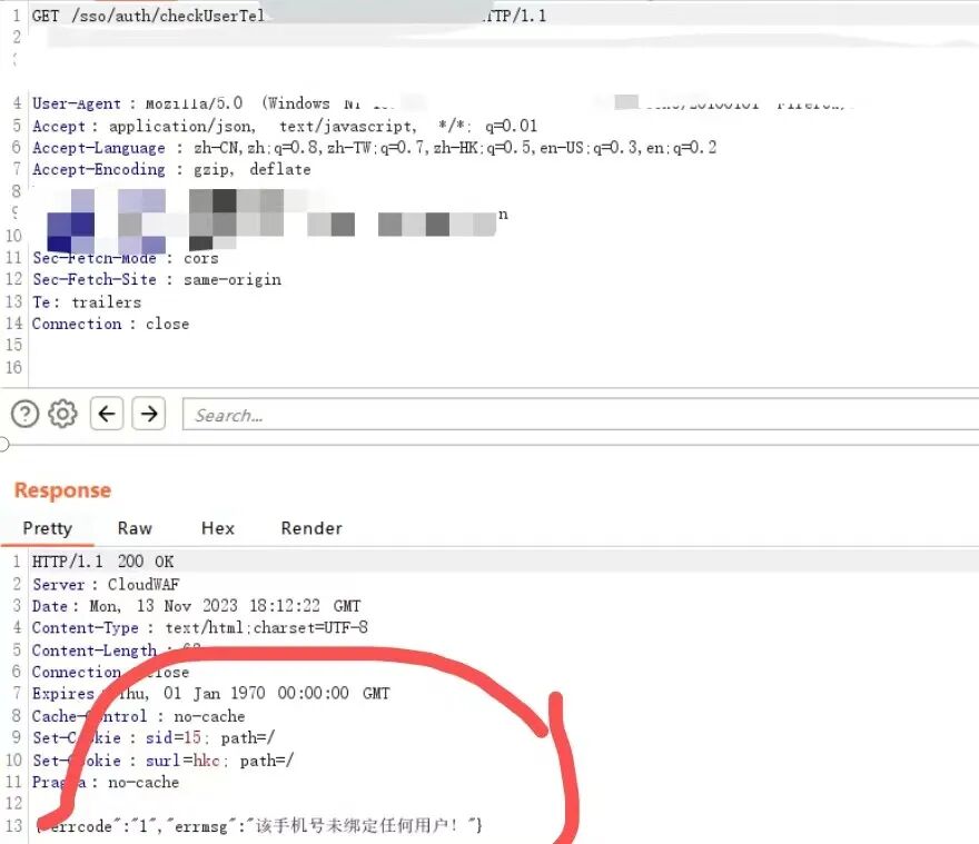 没注册的手机号会提示,抓包看看: