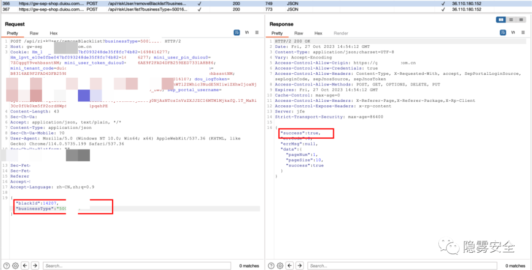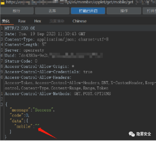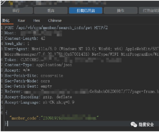 - 尝试用burp构建请求包。发现可以获取到明文的敏感信息