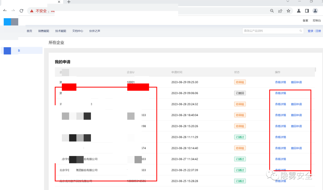 发现上万条企业信息泄露,请见文章最后步骤7,(可以批量申请加入企业,对审核人员造成负担)