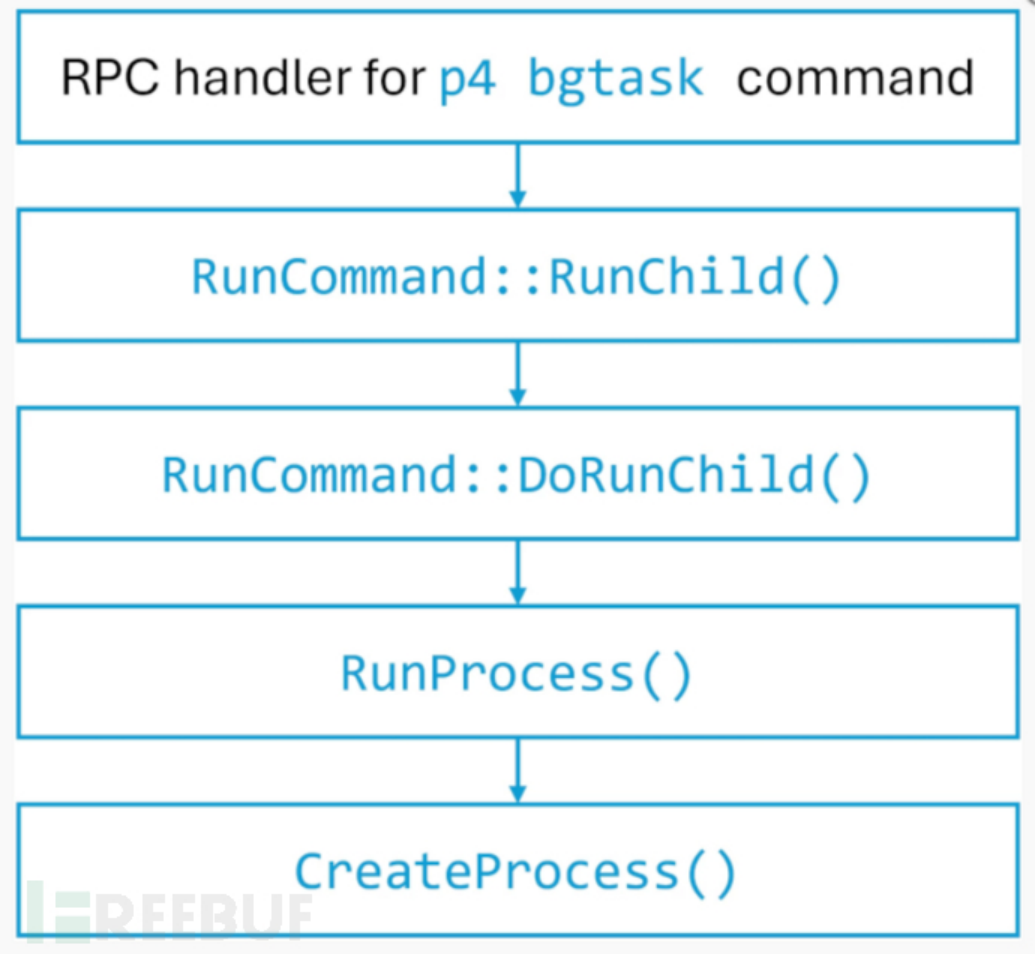 user-bgtask RPC 命令的错误处理。在默认配置下,Perforce 服务器允许未经身份验证的黑客以 LocalSystem 身份远程执行任意命令,包括 PowerShell 脚本。