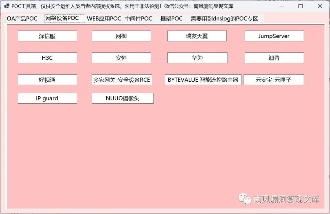 关注公众号 南风漏洞复现文库 并回复 漏洞复现92 即可获得该POC工具下载地址: