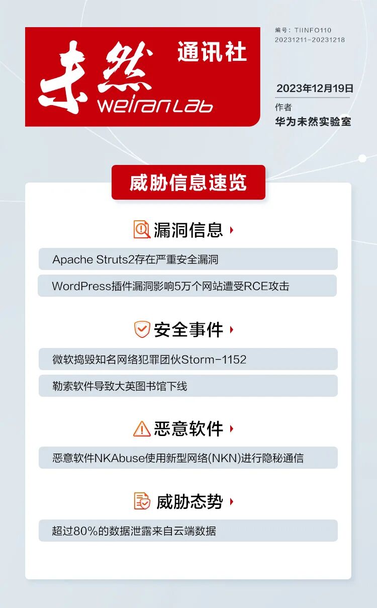 未然通讯社:WordPress 插件漏洞影响5万余个网站;80%的泄露数据源自云端