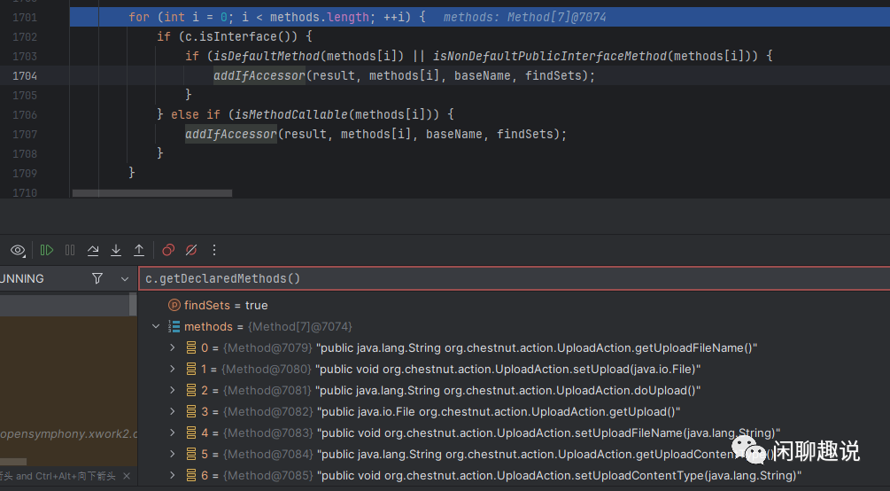 会首先判断传入的方法名是否以目标名字结尾,通过判断后会通过拼接get/set/is来判断是否是目标方法,由于传入的findSets是true,所以会找到setMethodName方法最终得到setUpload方法