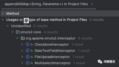 查看struts代码交叉引用,可知appendAll在如下Interceptor上有引用