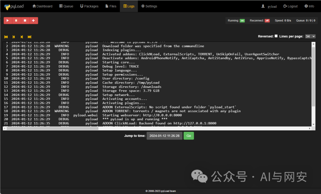日志注入漏洞。此漏洞允许任何未经身份验证的参与者将任意消息注入到pyload。