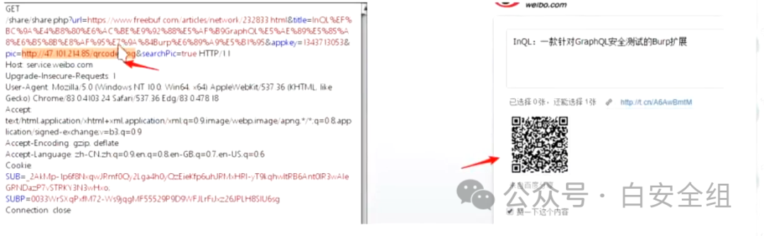 这里是网站正常的url中引用了一个图片,我们这里可以修改为我们的一个外部服务器的图片地址,成功读取出来,那么这里就存在ssrf的漏洞,我们下一步就可以测试是否可以执行命令,比如ping一下dnslog,也可以替换图片达到一个钓鱼的效果