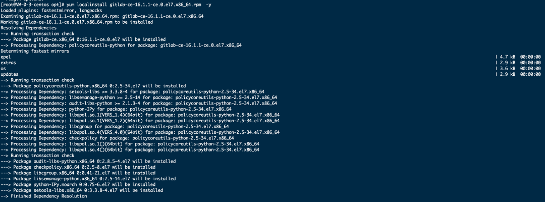 yum localinstall gitlab-ce-16.1.1-ce.0.el7.x86_64.rpm -y
