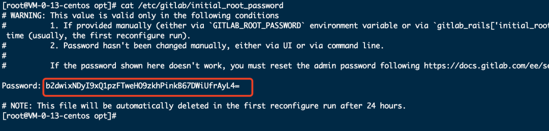 安装成功后会自动生成一个初始密码,24小时后第一次重新加载配置文件的时候失效
